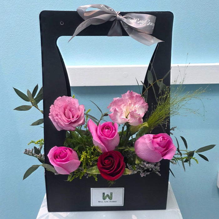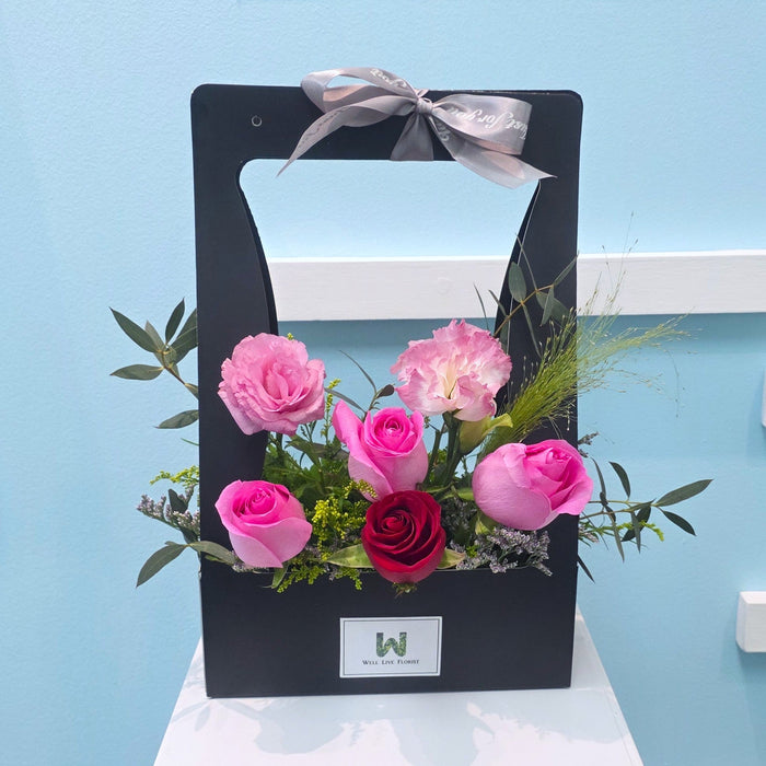 Budding Bliss is the perfect gift for any occasion. This fresh flower box features a stunning arrangement of pink roses and eustoma, carefully curated to bring joy to any recipient. With our luxurious and expertly arranged flowers, you can convey your heartfelt sentiments with ease.