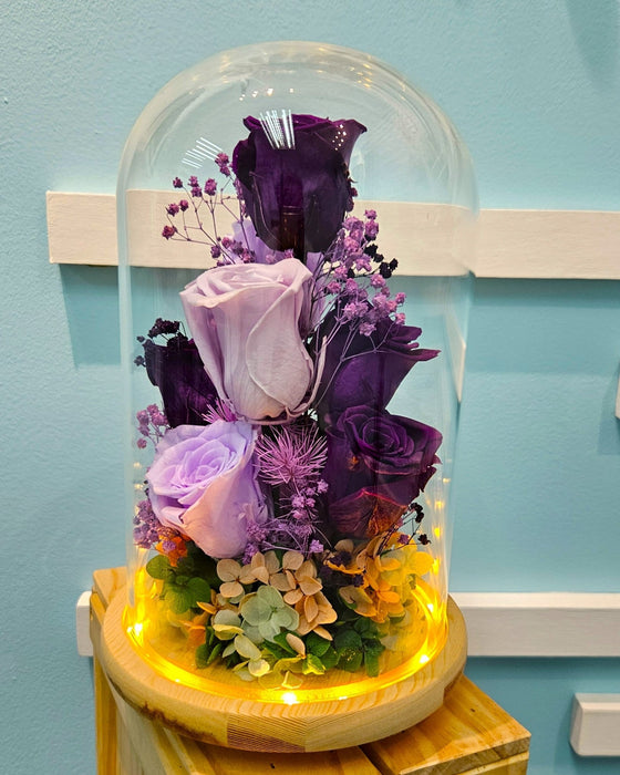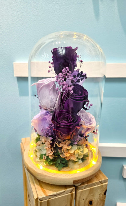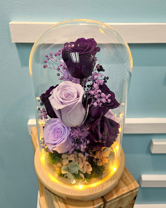 Eternal Lilac is an exquisite gift that combines a preserved rose with a purple theme, encased in a delicate dome. Perfect for any occasion, such as birthdays, anniversaries, or just to show someone you care. Enjoy the beauty of this everlasting flower.
