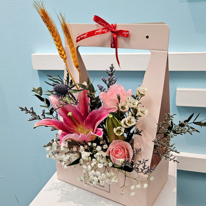 The Lily Rose Bliss flower box arrangement is the perfect choice for any occasion, whether it be a birthday, anniversary, or get well soon gift. It features a beautiful combination of lilies, roses, and baby's breath, all fresh and carefully selected for their vibrant colors and long-lasting beauty. Trust in the expertise of our florists to create a stunning arrangement that will delight and impress.