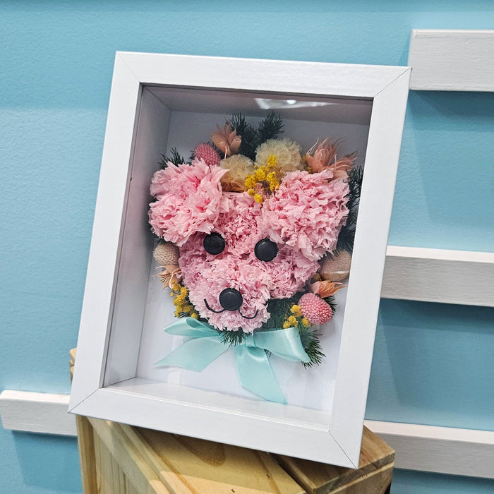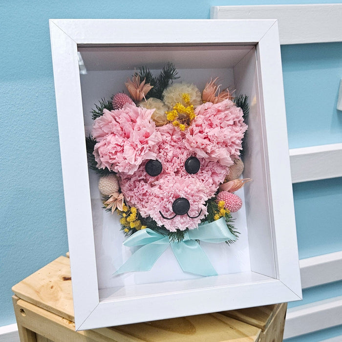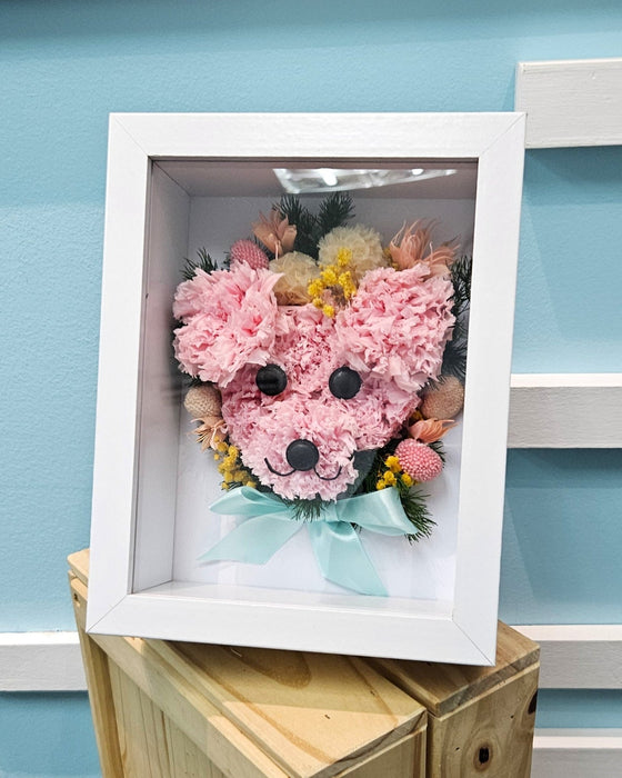 Celebrate Mother's Day with the MD Paws Love flower arrangement. Featuring beautiful floral artwork and preserved carnations, this bouquet also includes delicate baby's breath and an adorable puppy shape decoration. A perfect gift for any pet-loving mom.